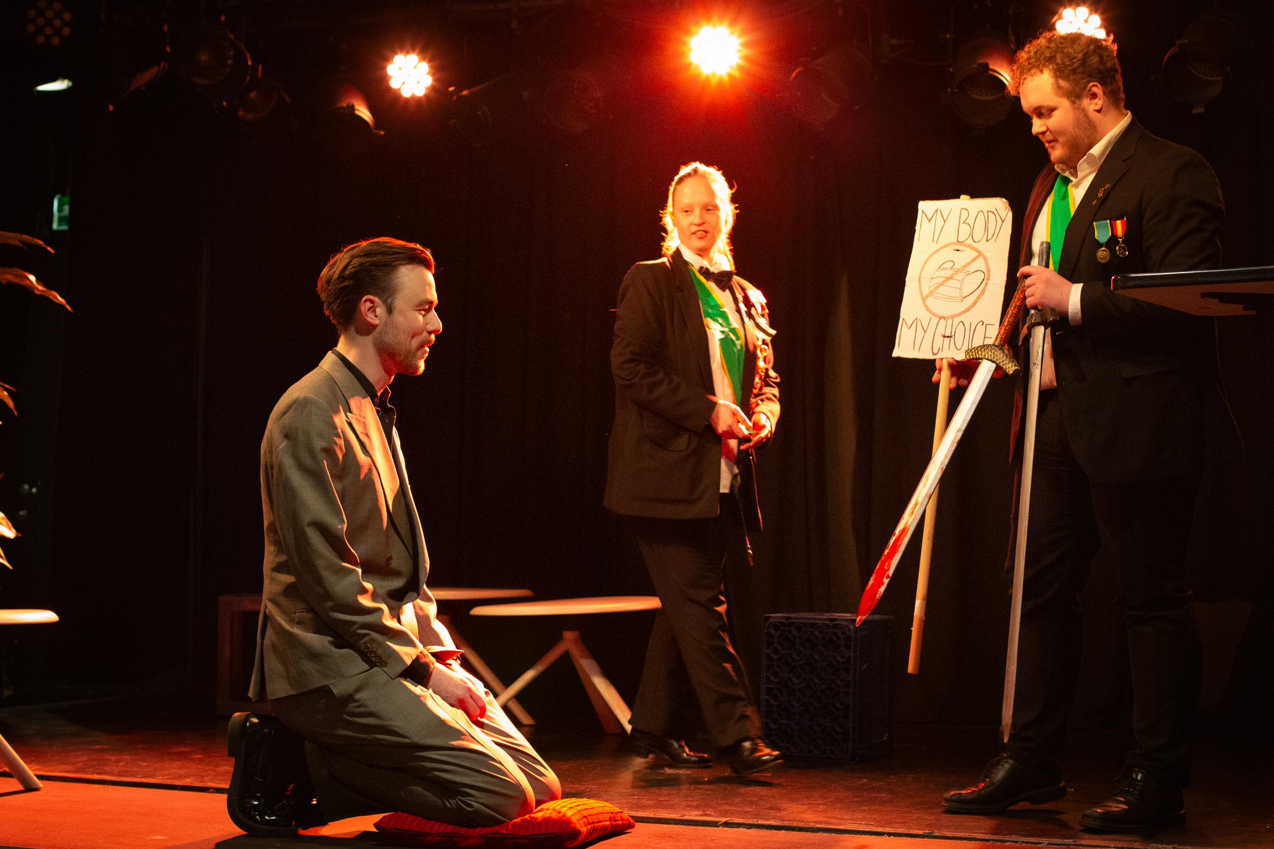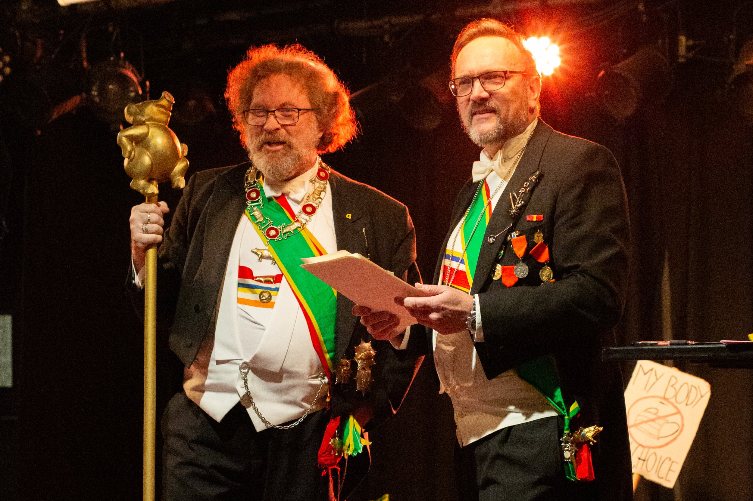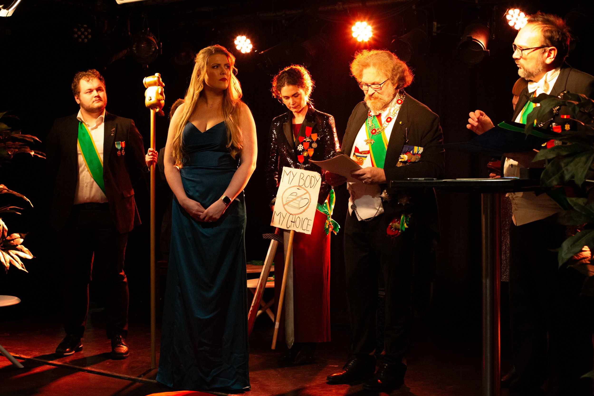 Hør! Hør! Hans Majestet Grisens teatralske venner! Det høytidelige Ordenskapitel har besluttet at late sin gunst regne over verdige og tro tjenere av Teater Neuf.