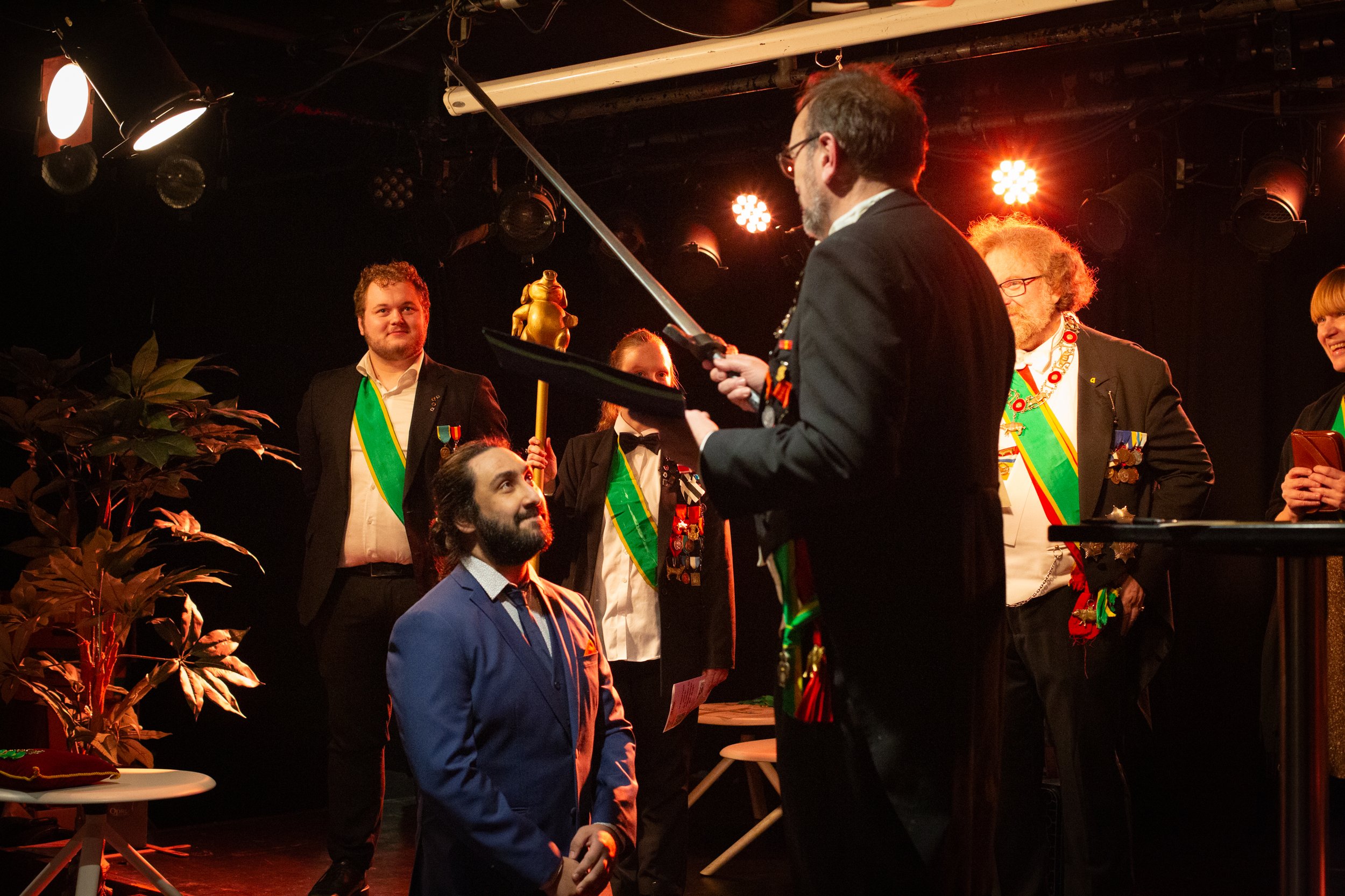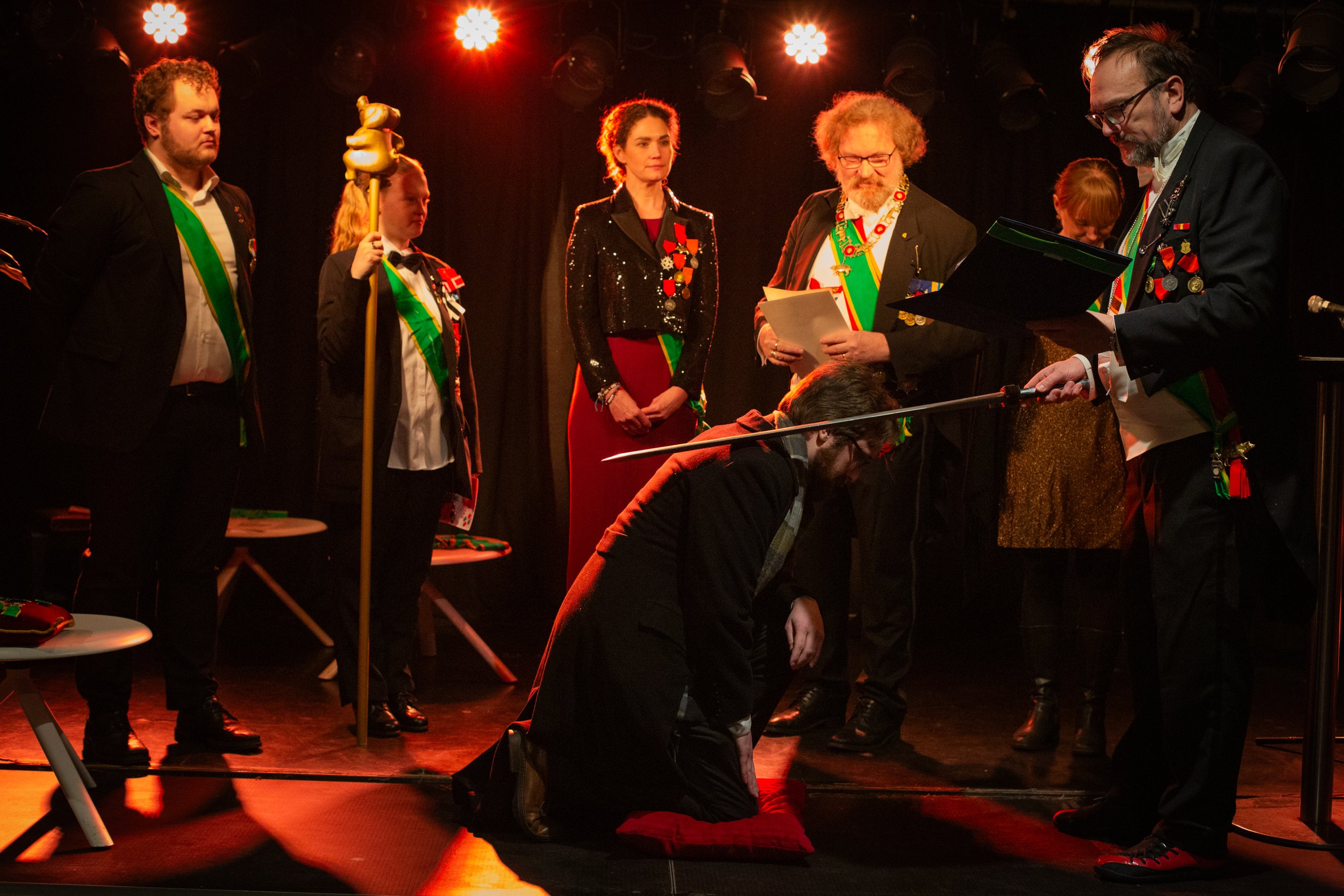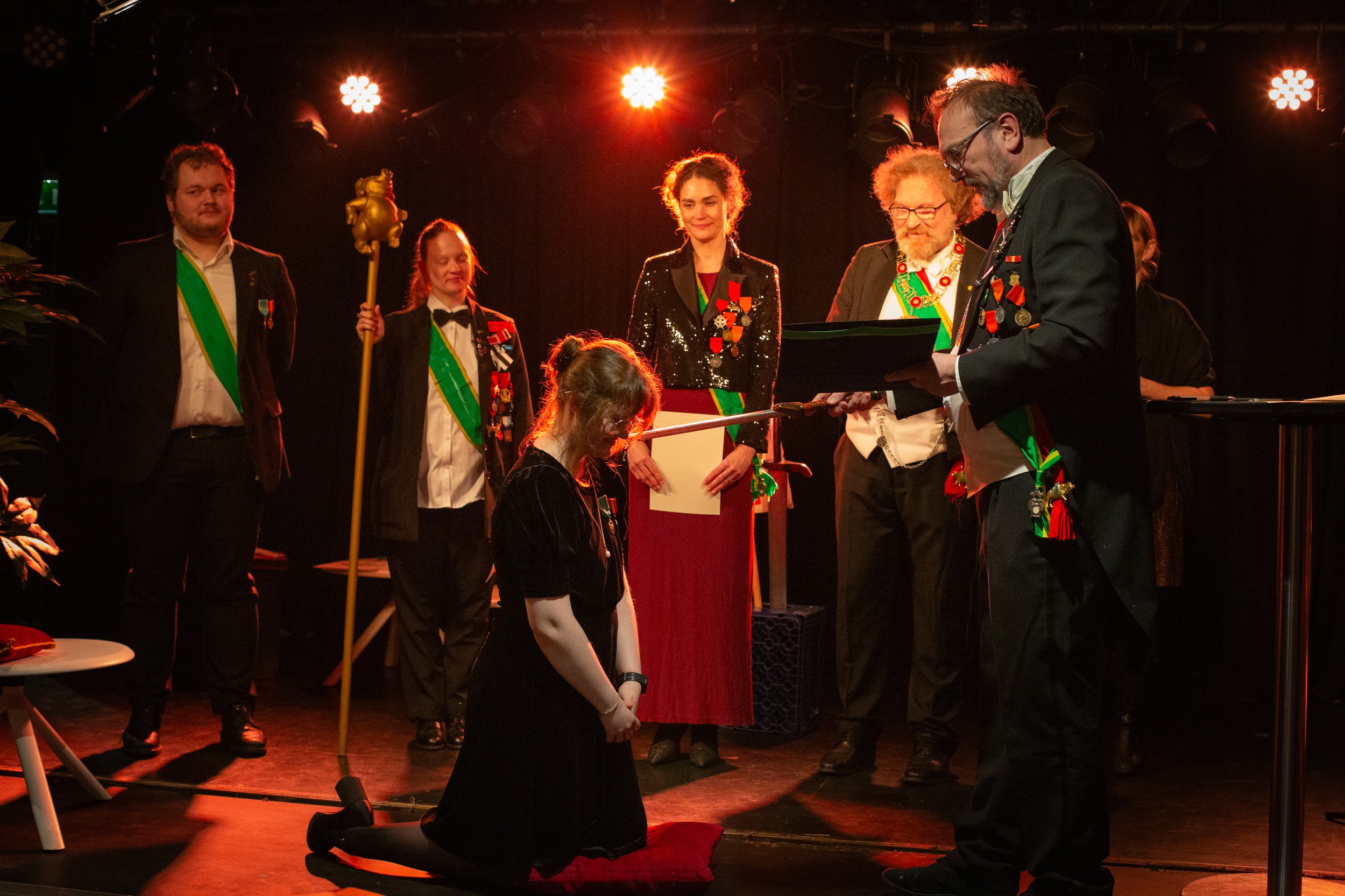 Fredag 6. desember (dog tre dager etter den offisielle “teaterets festdag” 3. desember) kom det alle har ventet på i 9 år. Ordenen er tilgitt forsinkelsen og kom med en utrolig imponerende liste til utnevnelse. Alle nye svarte som forventet på det “ultimate spørsmålet”, og fikk således gleden av å tre inn som riddere.