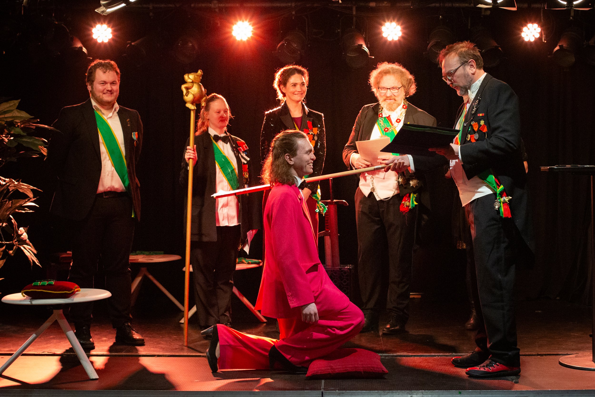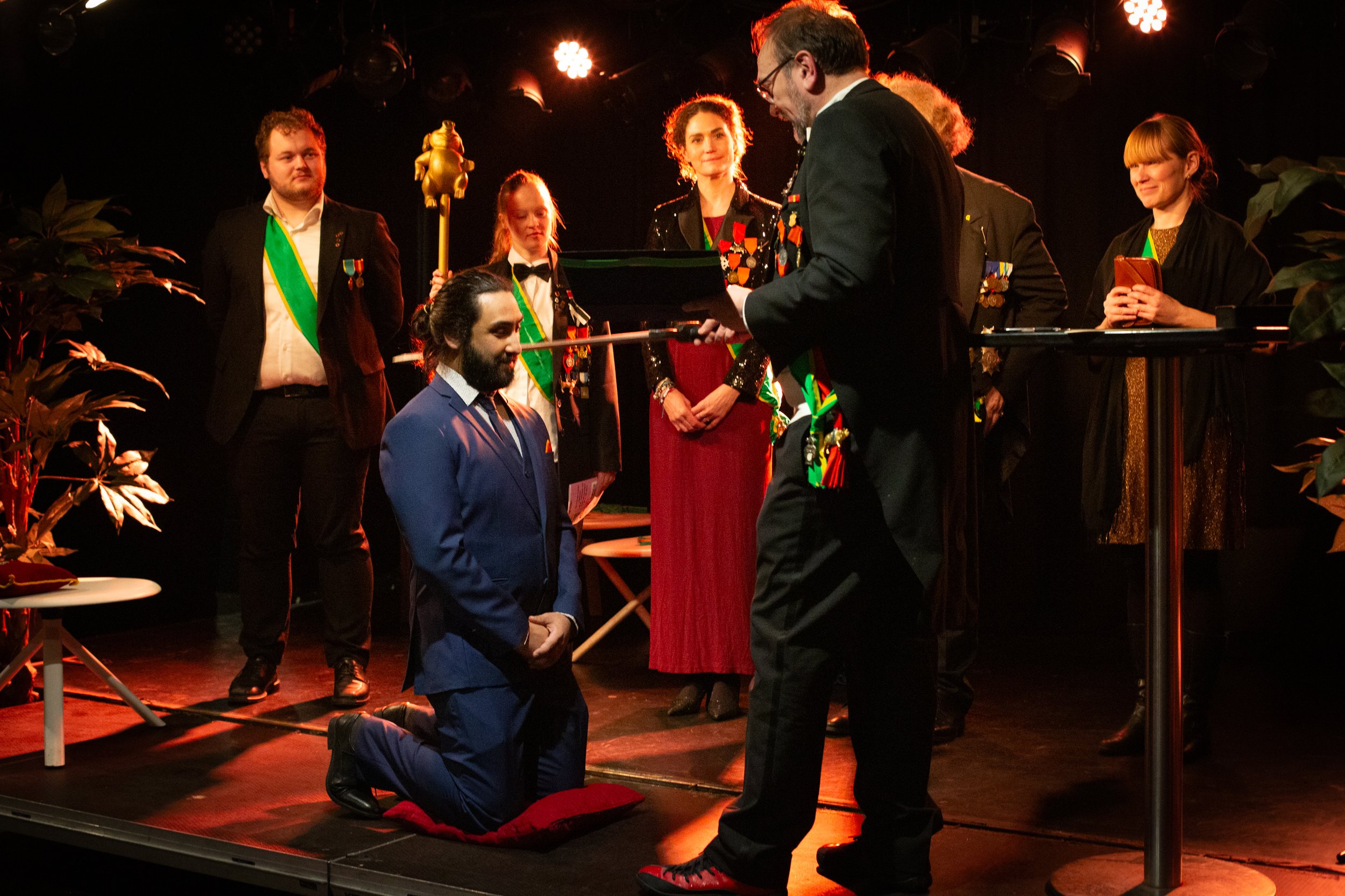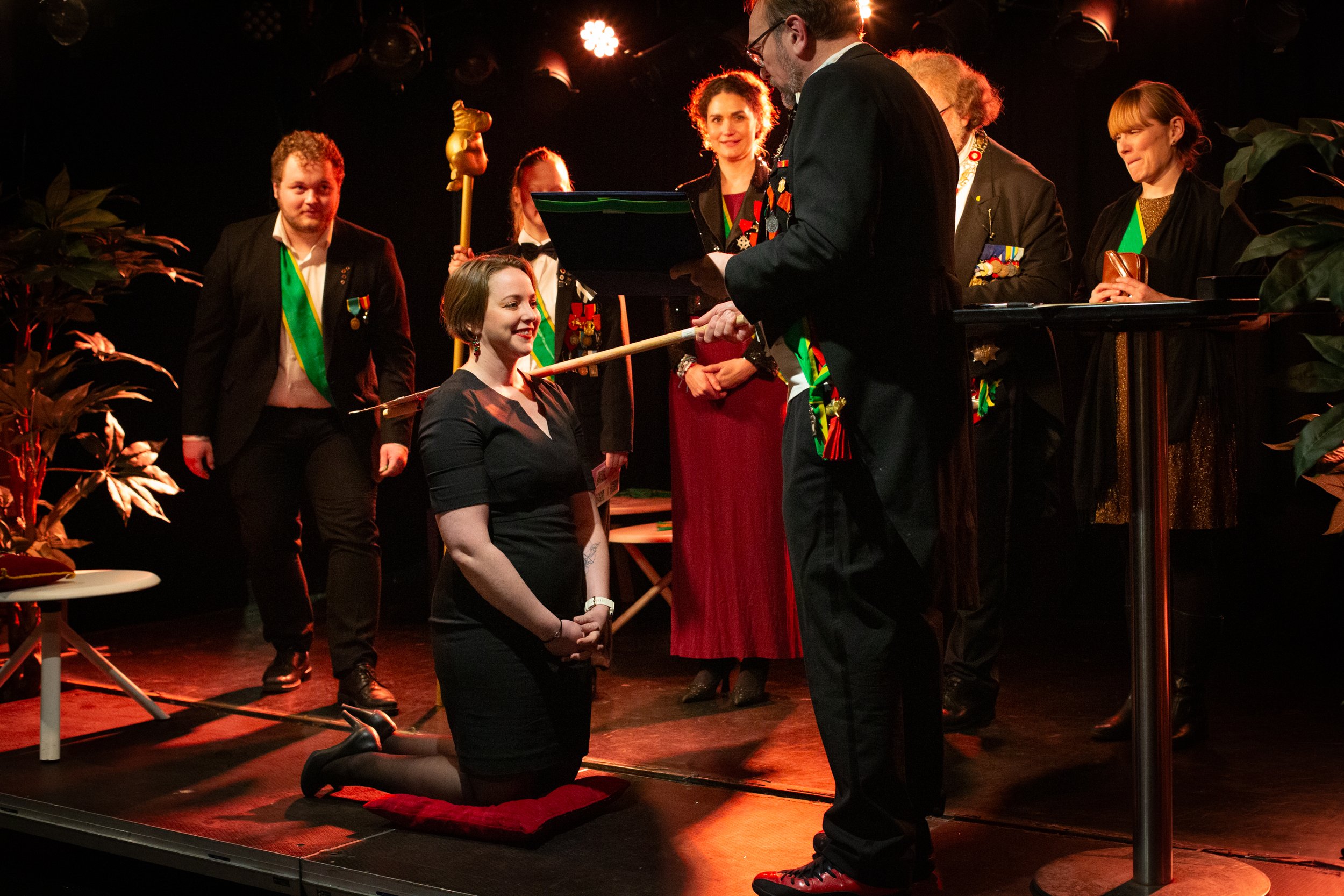 Fredag 6. desember (dog tre dager etter den offisielle “teaterets festdag” 3. desember) kom det alle har ventet på i 9 år. Ordenen er tilgitt forsinkelsen og kom med en utrolig imponerende liste til utnevnelse. Alle nye svarte som forventet på det “ultimate spørsmålet”, og fikk således gleden av å tre inn som riddere.